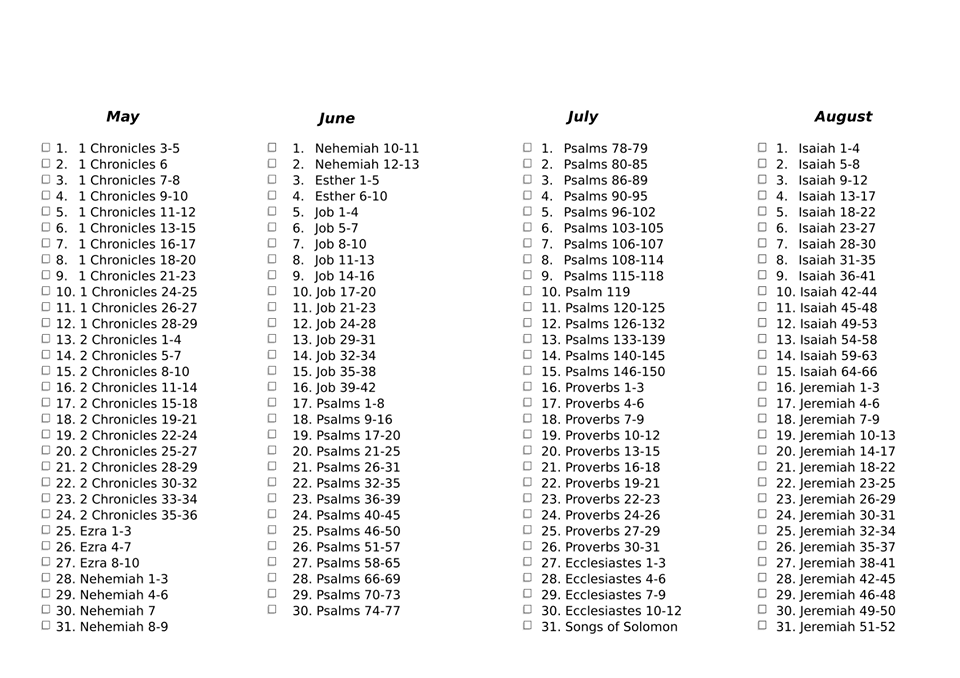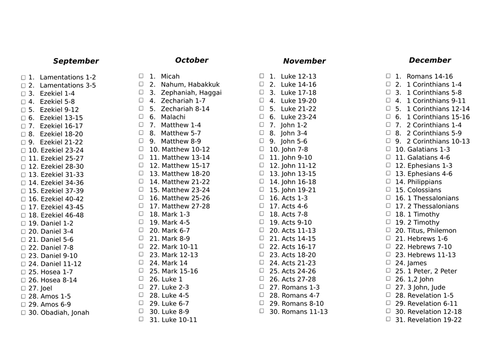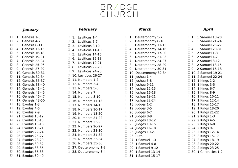 Attached below are the files for the 2018 Bible Reading Plan